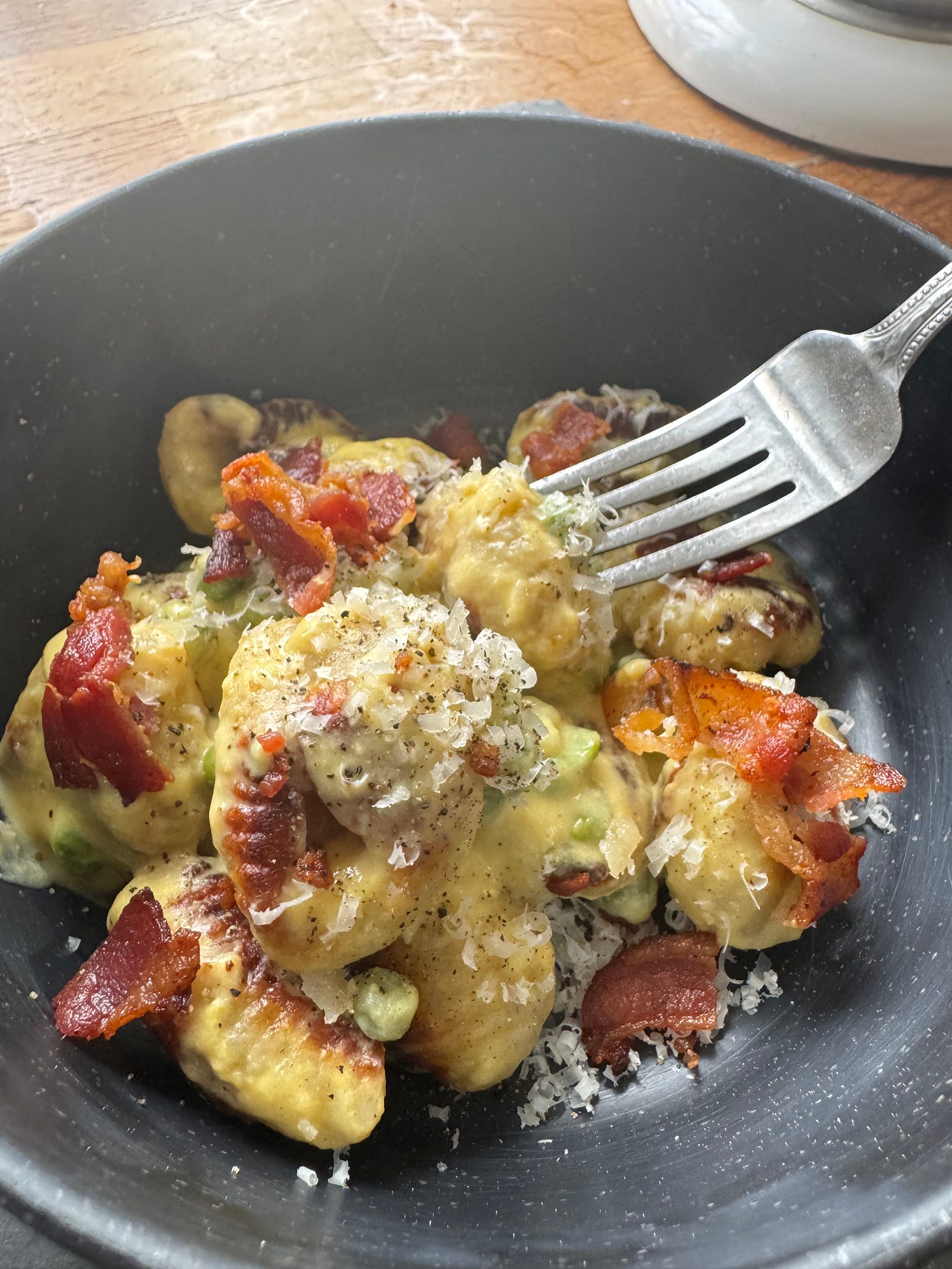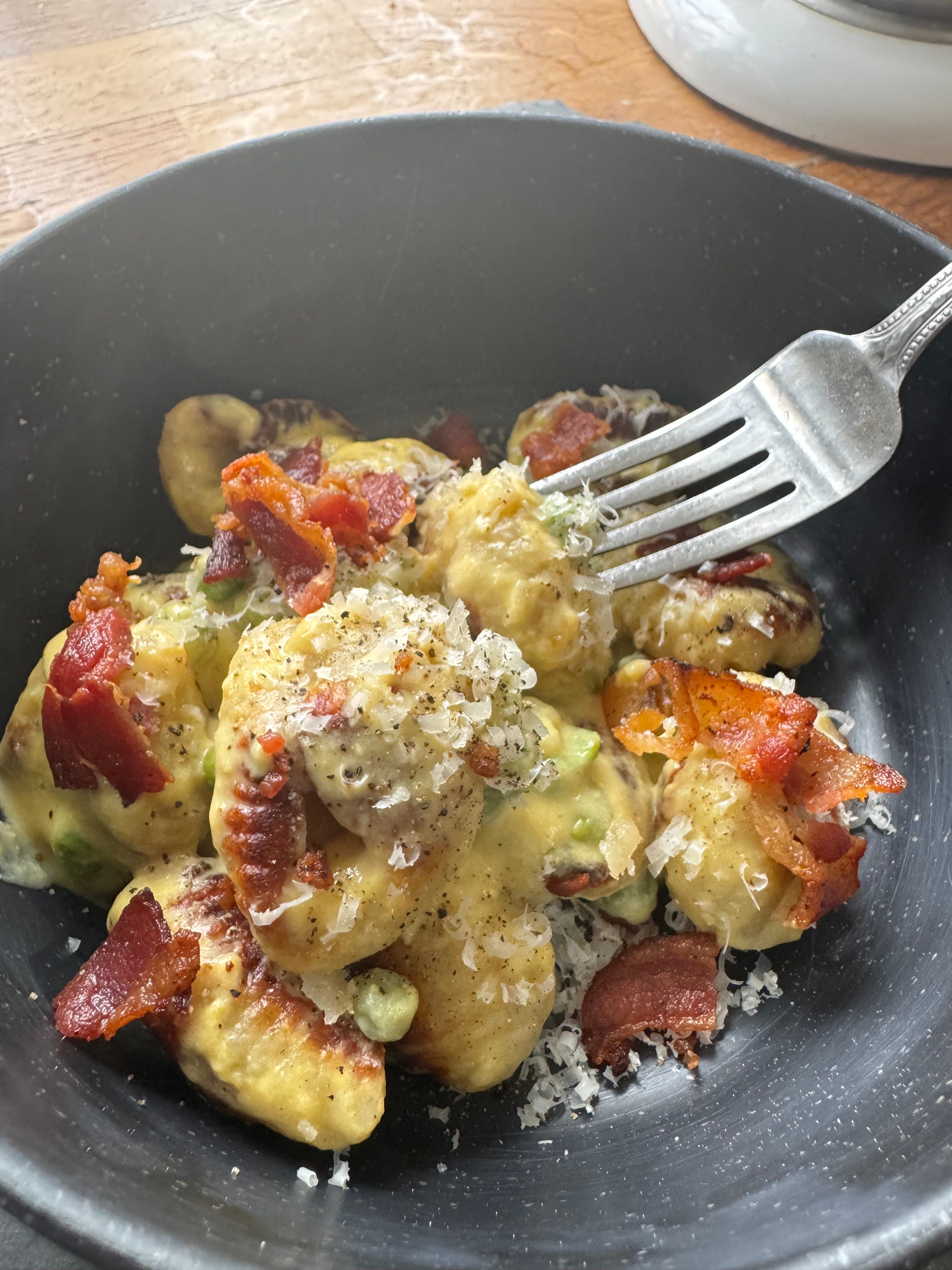 Brown gnocchi in the bacon fat with a little butter.